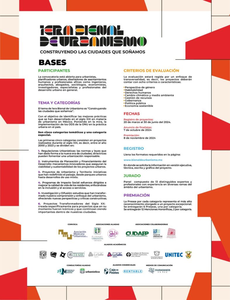 La convocatoria ya se lanzó y tienes hasta el 30 de junio para registrar tu proyecto. Checa toda la información en su página oficial @bienal_de_urbanismo